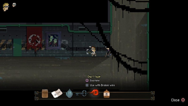 廊下に戻り、壊れたワイヤーに行きます。断線したワイヤーにはダクトテープを使用してください。