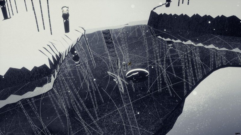 南に向かって曲がりくねった道をたどると、たけのこのみじん切りが積み上げられた雪が晴れた場所に着きます。竹のスタックの近くにある棒を拾って、薪を手に入れましょう。
