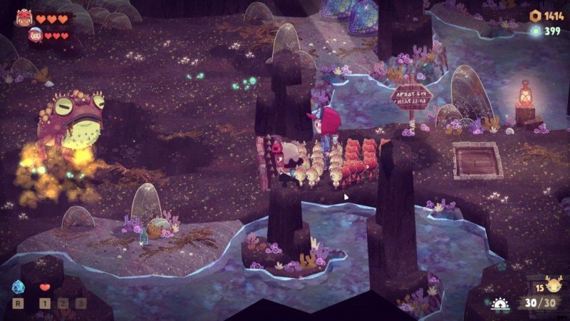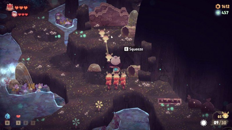 沈んだ洞窟のキャンプで少し休んだ後、スプライトリングのパーティーを編成し、開いたゲートを通り過ぎて西に向かい、Crud Croaker を見つけます。この敵と戦うことができるのは、クリーチャーの有毒ガスに耐えることができるツイグリングだけなので、彼らを戦いに送り出してください。 Crud Croaker を倒すと、西への道が開けます。