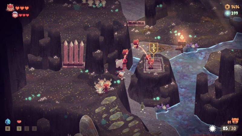 さらに南には、西への橋に使用できる木材があります。スプライトリングを送って木材を集め、木の山の南にある小道を進みます。これにより、破壊できる腐敗ノードまで北に移動します。