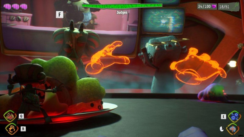 2 番目のヤギはへらに置き換えられます。スパチュラは宙に浮かせて攻撃する。急降下攻撃はヤギのラムのようなものなので、かわすのは難しくありません。いつものように、本当の危険は紫色のネバネバにあります。