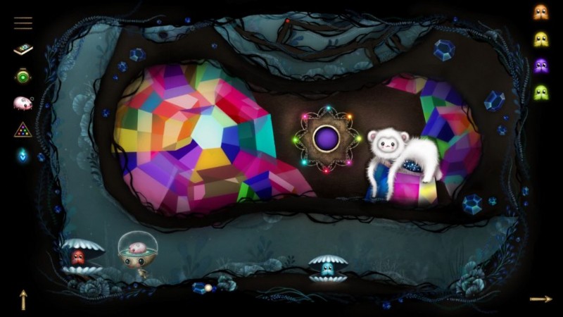 光のスプライトの迷路の左側には、カラフルなメモリー クリスタルとスターベリーがあります。地面のハマグリとやり取りして、さらに 2 つのレインボー ブライトを手に入れましょう:赤とシアンです。