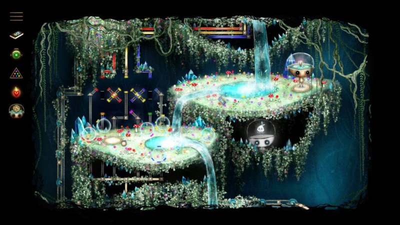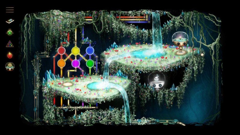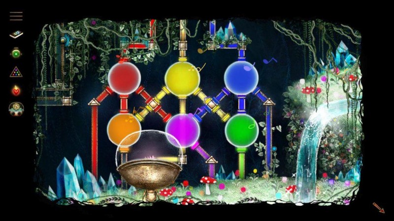テレポーターの上にあるカラフルな配管を操作します。ここで、6 つのミキシング ジャーと 2 つのパイプを元に戻す必要があります。これはかなり簡単です:瓶とパイプの端にある色の印に従って、瓶とパイプをはめ込むだけです。