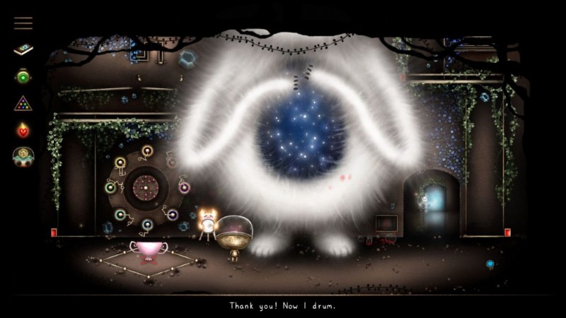 十字架の近くにいる光っているファイアーパフに話しかけると、怖くて太鼓を鳴らすことができないと教えてくれます。