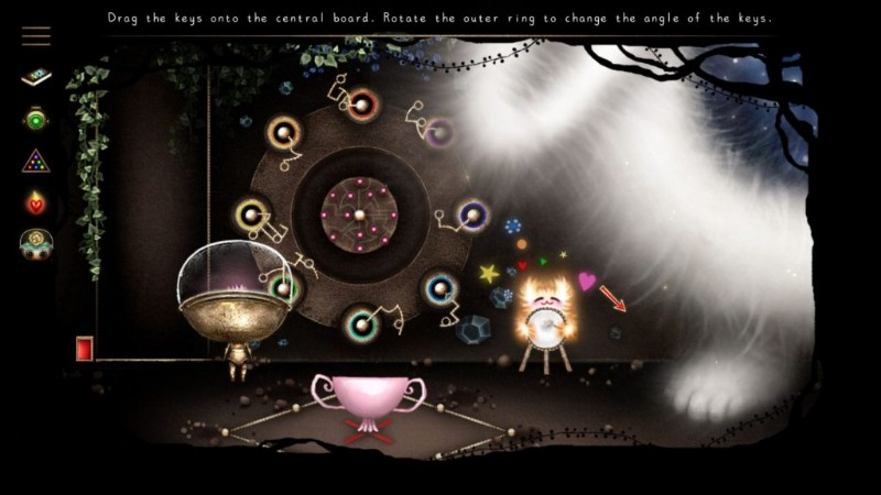 ここでの目標は、中央のボードに「キー」を配置することですが、キーをボードにドラッグする前に、キーを正しい角度に回転させる必要があります。キーの円は、中央のピンク色の点と揃える必要があります。