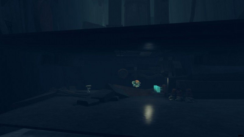 大きな閉じたドアに着いたら、船の後ろに行き、レバーを右に回してウインチを下げ、トラップドアを降ります.ウインチのフックをつかみ、フックの青いキャッチが見つかるまで水中で左にドラッグします。