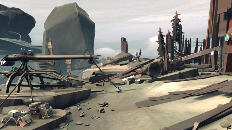 水中では、船は蒸気の力でしか前進できないことに注意してください。蒸気機関を始動して右に進み、木製の障害物を突き破ってください。