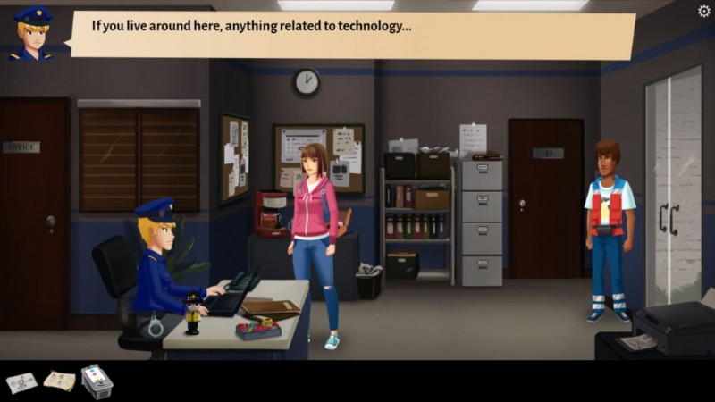 カリムの家がある通りに戻り、警察署に行きます。ここ(画面の右下)にあるプリンターを調べると、カラー カートリッジを使用している警察署について知ることができます。オフィサー アンコラと彼女の一日について話し、必要なカートリッジを手に入れましょう。