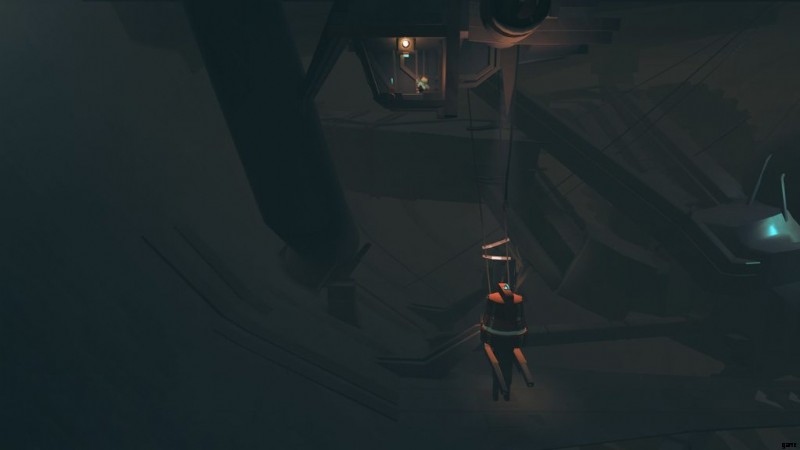 上のウィンチまで泳ぎ、レバーを左に引いて、ウィンチのフックを壊れたコンポーネントの上部のキャッチに合わせます。