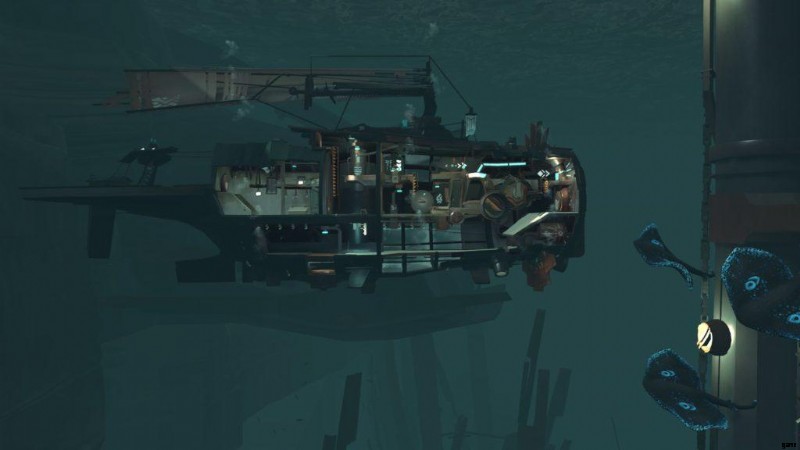 水中ドアに到達するまで進みます。ここで下降を止めて、蒸気エンジンを始動してください。ドアを通り抜けるように動かしてください。
