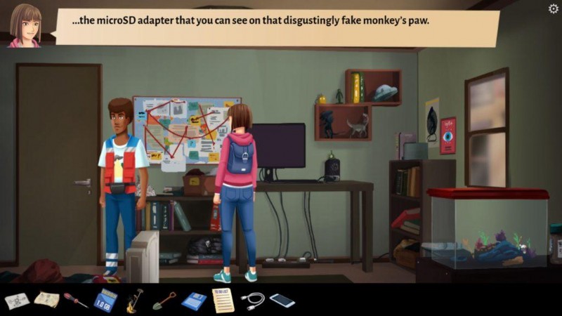 カリムの家に向かい、一番下の棚、コンピューターの左側、ピンボードの下にあるクロザルの足を調べます。