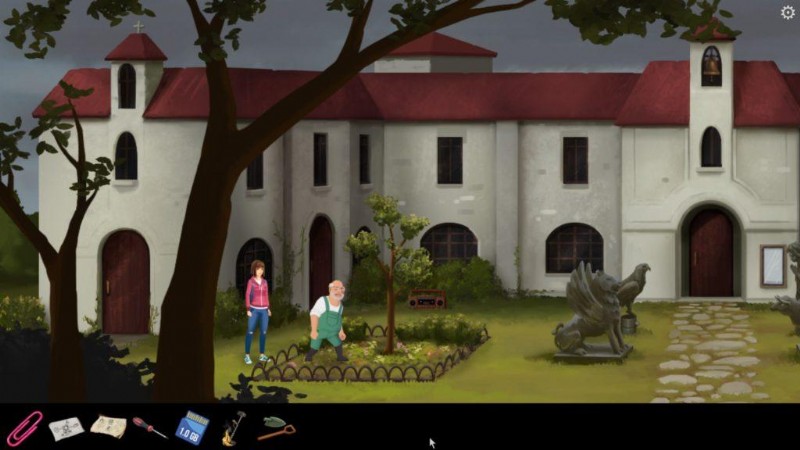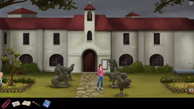 サムエルともう一度話し、クリスマスイブのミサについて話します。会話の後、修道院の入り口近くにある雄鶏の像を調べてください。