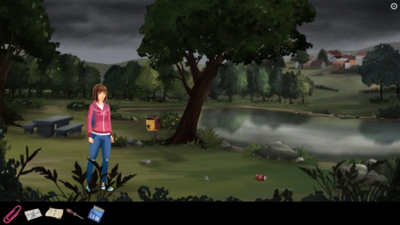 マップを使用して湖に行きます (修道院の図の右側にあります)。地面に落ちているソーダ缶を拾うと、ナタリーがゴミ箱に落とします。