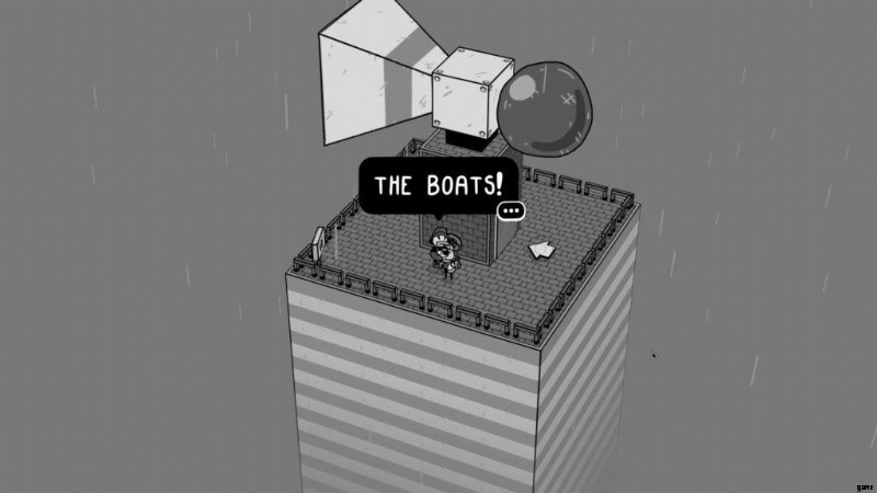 次に、キーパーがどこでクラクションを鳴らすかを尋ねます。もう一度、カメラを装備して、今度は岩の上に立ち往生しているボートにズームインします。すぐにいっぱいになるプログレス サークルが表示されます。これにより、キーパーはボートを「警笛」で鳴らします。