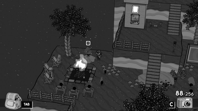 不気味な木の写真を撮ってから、キャンプファイヤーのそばにある葉っぱの人のところまで戻ります。不気味な物語が終わると、スタンプがもらえます。