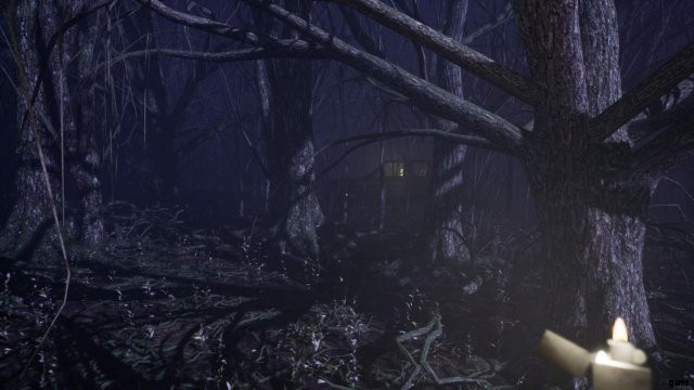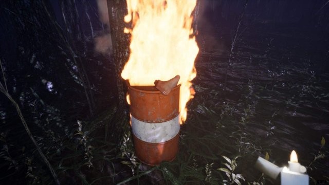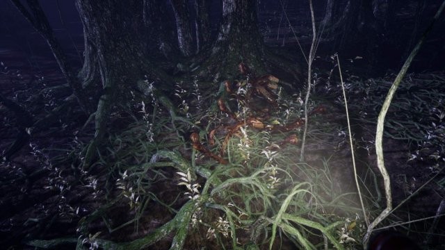 F' を押して懐中電灯をオンにしてから、右側の森に行き、これに出くわすまで周りを見回してください。