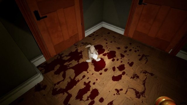 Interact with the drawers a few times. The door you came from opens up. Go inside. Zoom on the blood from the left.