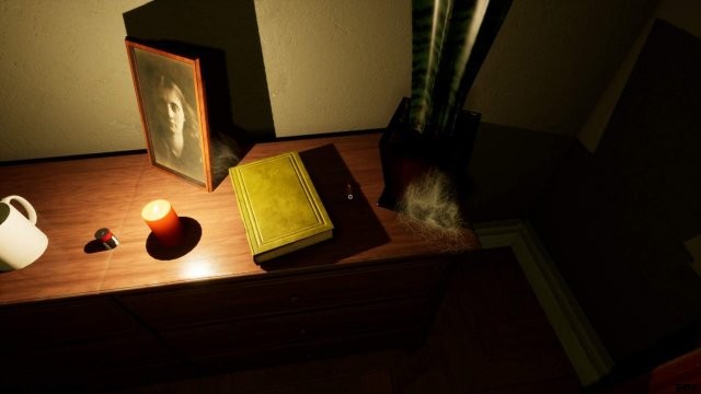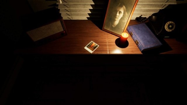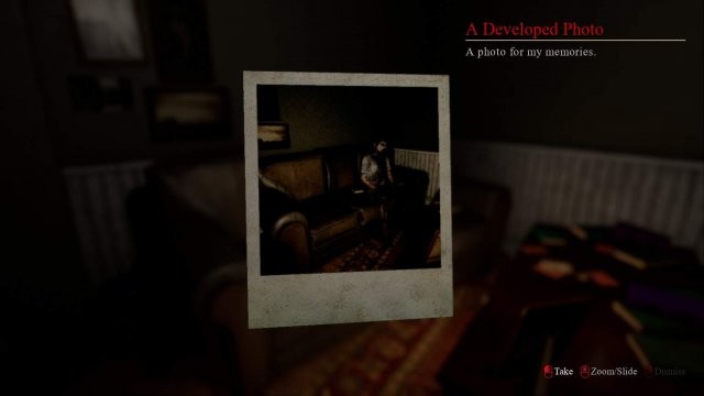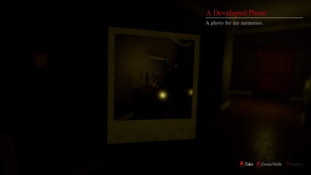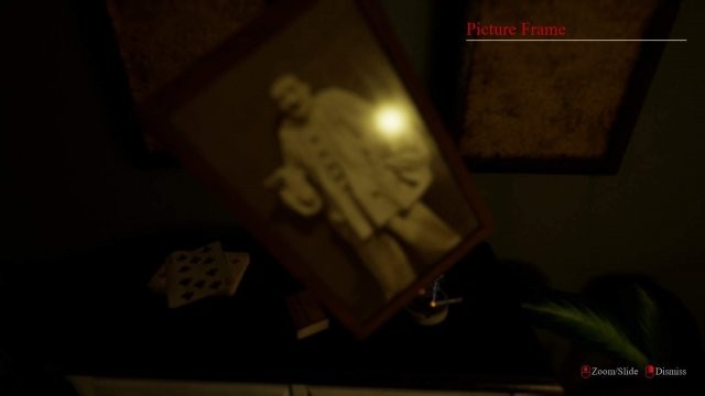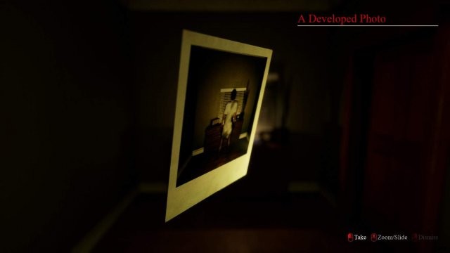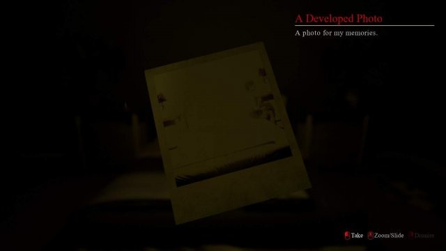 Return to the bathroom. A photograph spawns on the table to the right.調べてください。