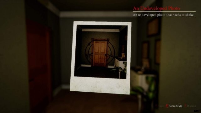 To the end of the corridor, you’ll see a photograph of a door. Zoom on it.