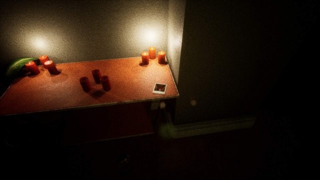 Roam the hallway until a picture spawns on the table with many candles on it.調べてください。