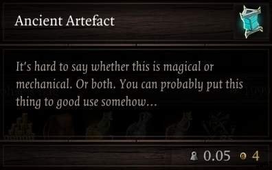 古代のアーティファクトは、永遠のアーティファクトと同じアイコン、モデル、および説明を持っていますが、目的がなく、何にも使用できません。ゲーム全体で 2 つしかなく、自由に販売できます。