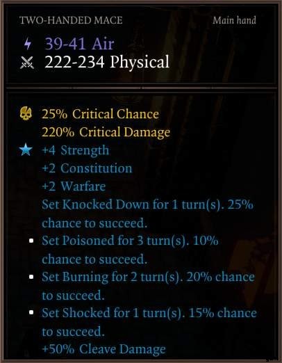 - 武器 – 25% の航空ダメージ &15% の確率で 1 ターンの間、ショック状態にします。