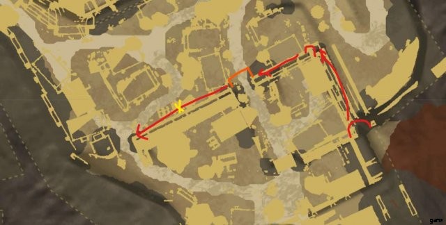 ここが最初の難しいジャンプになります。バレルの端まで歩いて、監視塔とスパムスペースを斜めに通り過ぎて、角を曲がった通路を登る必要があります。転んだ場合は、ドアの後ろに隠れて unstuck を使用できます。