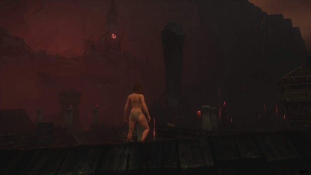 これに従って、角を曲がってもう一度ジャンプします。棚のこの部分を、橋の隣にある端まで進みます (橋のすぐ隣の支柱は歩くことができません)。端にいるときは、ジャンプしてスペースをスパムし、橋に乗ります。大きな城壁の通路に一度行けば、安全です。 (悲しいことに、私が試した限りでは、ランドマークの外にあるにもかかわらず、キャンプファイヤーを設置することはできません。)
