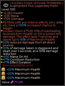 Crown of Innate Probability TL – すべてのパッシブ procs とトリガーに対する非常識なブーストであり、このビルド全体の中心的なアイテムです。
