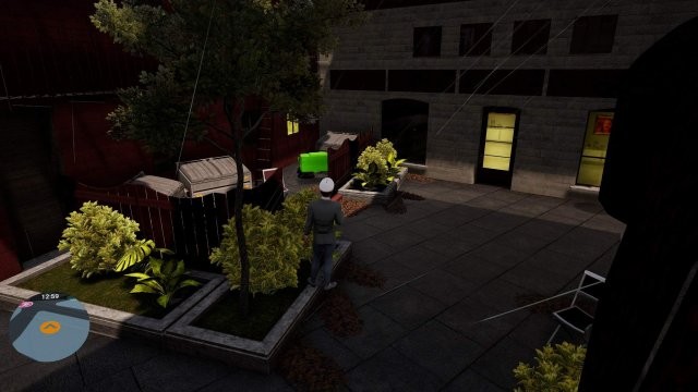 いくつかのゴミ箱の後ろに隠れた路地裏。停留所「メイン アベニュー」の近く。