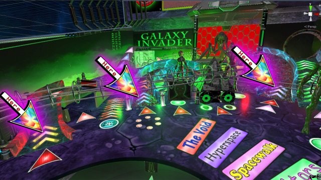 スキル ショット ミッションは非常にシンプルです。最初に新しいボールを発射したとき (余分なボールが与えられた場合はカウントしません)、25 秒以内にボールを右のランプから青いポータルに打ち込みます。これは緑色の矢印が点滅することで示されます。タイマーが切れる前にこのショットを作成しないと、「どこにいるの?」という異星人の挑発が聞こえます。