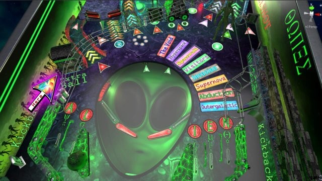 銀のテレポート ドアが開いたら、左上のプレイフィールド フリッパーを使用してボールを銀のテレポーターに撃ち込む必要があります。成功すると、ボールはこのコーナーからテレポートし、右上のボイド ポータルから飛び出します。ミッションのパート 1 が完了しました。残り 1 分でパート 2 を完了します。テーブルの中央にあるエイリアン スピナーを合計 8 回回転させます。スピナーを強く叩けば回すほど速く回転します。また、ヒットする必要がある回数も少なくなります。