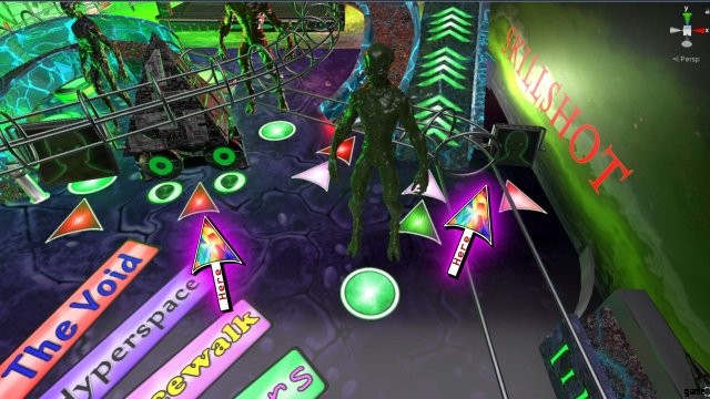 正しい紫色の矢印のショットを打つと、ミッションのパート 2 がアクティブになります。下の写真に示されているピンク色の LED 矢印で示されている 3 つのショットを打つことを含むミッションのパート 2 にはタイマーはありません。これらのショットは順番に打たなければなりません。