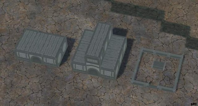 Builder's Hut は 3×2、配布ポストはこの奇妙な 5×3 で 2 つの角がノックオフされており、ドロップオフ ポイントは 2×2 です。