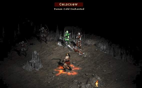 Coldcrow:超ユニークなダーク レンジャー。ほとんどの場合、Cold エンチャントされた最初の敵です。特に近接戦闘機の場合、あなたを遅くする冷たいエンチャントされたモンスターに対処することは困難です. Coldcrow は彼女と一緒に射手の群れを持っており、彼女は低レベルのプレイヤーにとって非常に危険です。コールド エンチャントされたモンスターが死ぬと、コールド ノヴァが放出されます。 Coldcrow は The Cave (Cold plains) と呼ばれるオプションの洞窟の場所にあります。