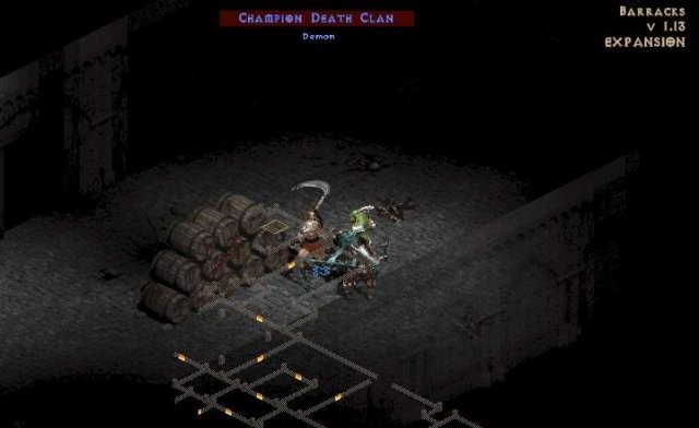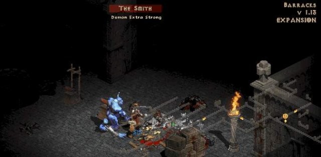 兵舎とスミス:最初のより危険な場所です。移動するスペースがあまりなく、簡単に取り囲まれる可能性があります。ゴートマンとアーチャーは、パックまたはチャンピオン/ユニーク バージョンの場合、危険になる可能性があります。やみくもに部屋に駆け込むのではなく、ゆっくりと行ってください。スーパー ユニーク モンスター スミスは、ホラドリック マルスを守っている兵舎のどこかにいます。彼は近接範囲で高いダメージを持っています。マップ上の彼の位置は、「ハンマー」アイコンで強調表示されます。