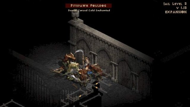Pitspawn the Fouldog:超ユニークな「Tainted」。コールドエンチャントと呪い。能力の組み合わせからしてかなり危険な男。彼と彼の群れがあなたを取り囲まないようにしないでください。そうしないと、冷気攻撃であなたを遅くし、増幅ダメージのためにあなたにより多くのダメージを与えるので、あなたは大きな問題になります.地形を有利に利用して、1 つずつ倒します。ピットスポーンは刑務所の 2 階にあり、常に同じ小さな場所にいますが、マップ上ではランダムに配置されています。お部屋の形は写真でご確認ください。彼は通常、このエリアにいて、刑務所の向かいの部屋の角の後ろにいることがよくあります.
