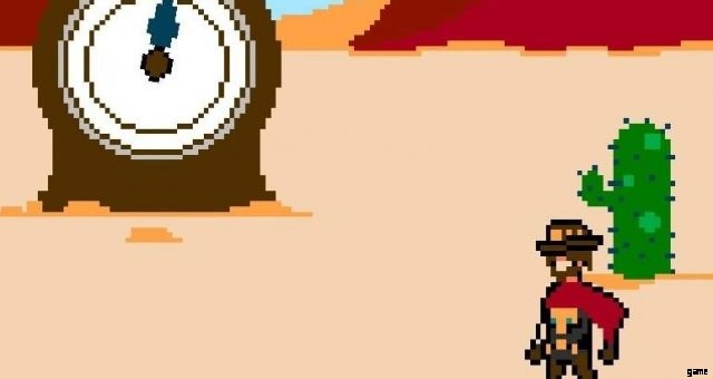 決闘を続けるとHighnoonerに遭遇します。彼に対するミニゲームは単純です:時計が回ったら、撃ちます。