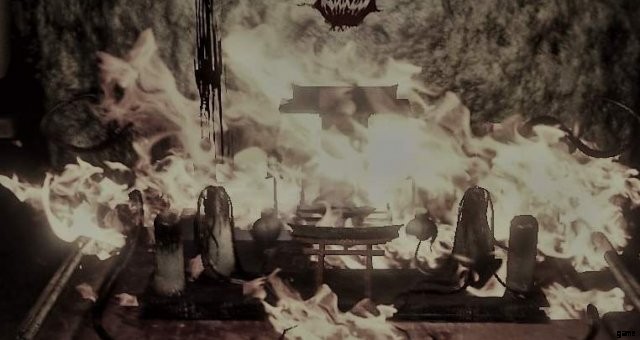 - 最初の受付で、最後から 2 番目の部屋に行き、フェンスで囲まれた小さな庭を通り過ぎます。そこには、卵を燃やす儀式がある場所、ランプとクモの巣の植物の間にあります。
