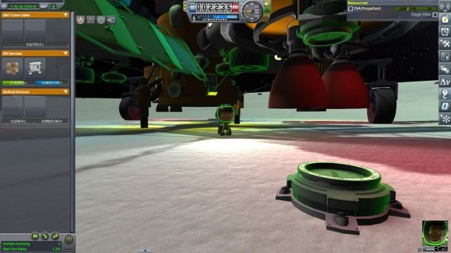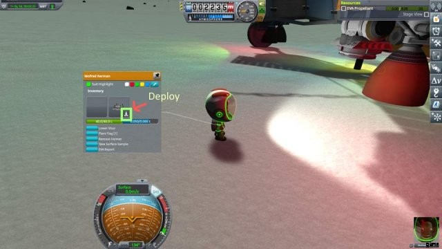 クランプを配置したい場所に kerbal を配置し、kerbal を右クリックしてインベントリを表示します。