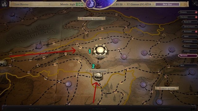 - 1 – Drezen – ゲームの十字軍モード全体で最も重要な場所。これは、訓練可能なユニットの採用を可能にする都市であり、冒険パーティーが休憩して腐敗を取り除くことができる都市であり、主要なクエストハブであり、マップ上に出現するあらゆる侵略悪魔軍の最終的な標的です.残念ながら、西からの侵略軍に完全にさらされています.