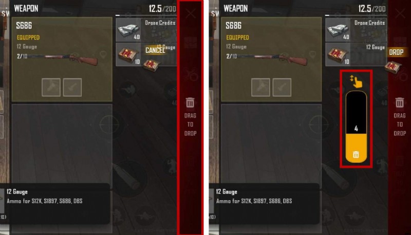 - ドロップするアイテムをタップすると、「DROP」と「DROP ALL」もアクティブになります。