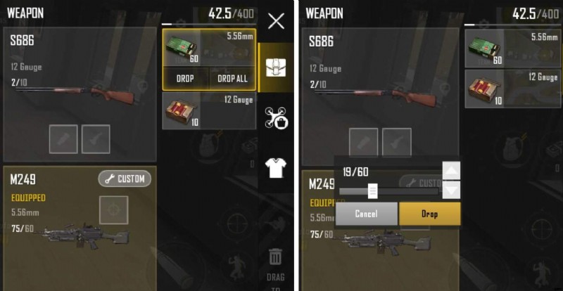 PUBG:新しい状態 – インベントリ機能:ドロップ アイテム