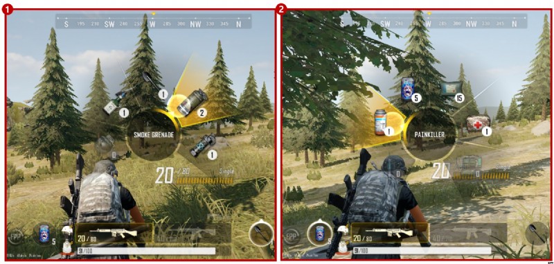 PUBG:新しい状態 – 投げられる / 回復アイテム ホイール ウィジェット