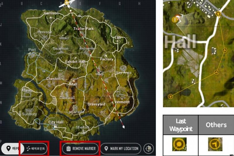 世界地図の左下隅にあるボタンを使用すると、マーカーとウェイポイントを切り替えることができます。