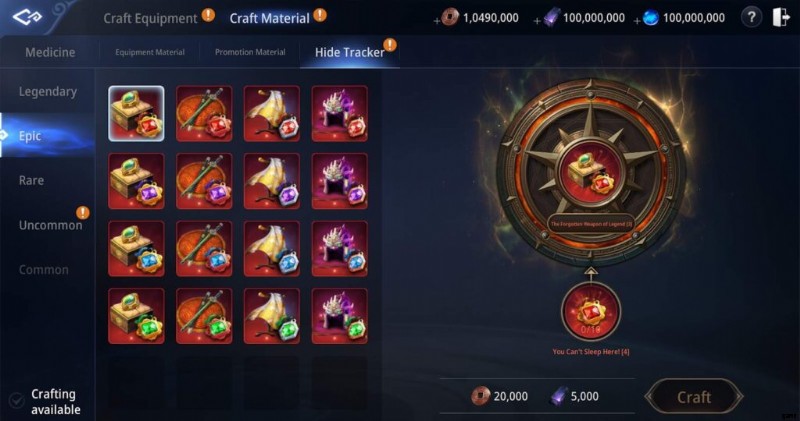 - アーマーにはアンコモン/レア/エピック/レジェンダリーのグレードがあり、クラフトが大成功するとトレード可能なアーマーを入手できます。