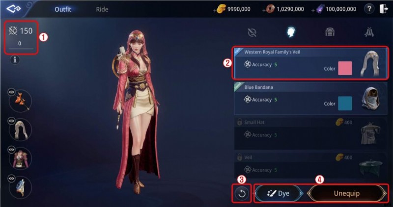 メニューの [キャラクター - ライド] タブをタップするか、衣装ウィンドウの左上にある [ライド] タブをクリックします。