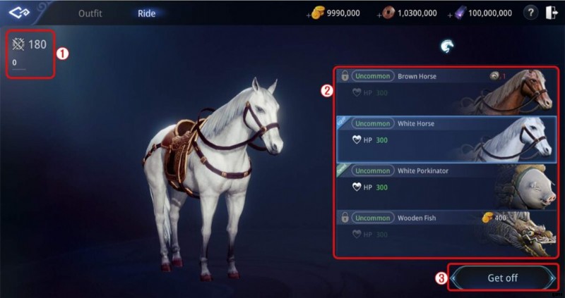 <オール> マウントを所有することで増加したステータスを確認してください。