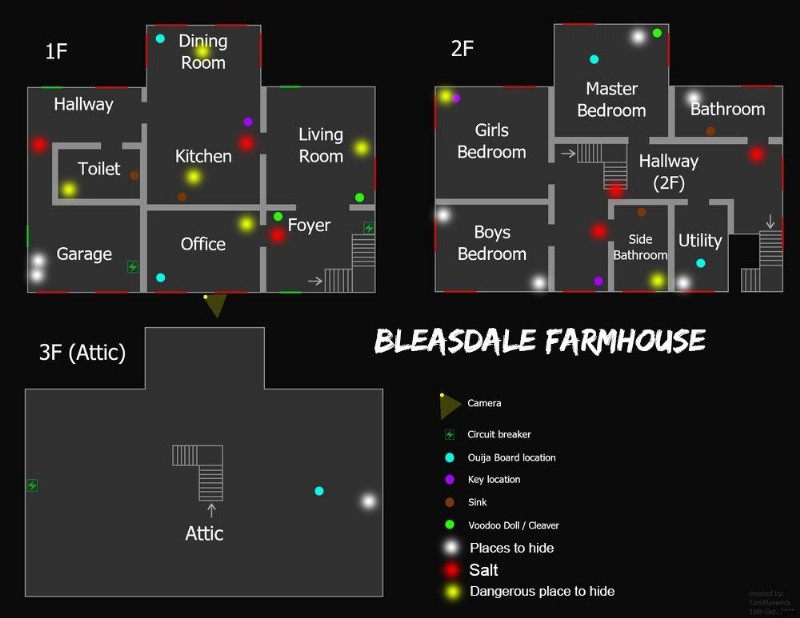 塩を入れるポイントと隠れる場所に印をつけました。この家では幽霊を見つけるのが難しいです。幽霊は廊下に現れることが多く、ビデオカメラや温度計がうまく機能しません.