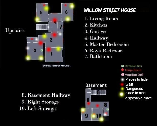 バスルーム、屋台 (ゴーストがいない場合)、図書館、または地図に表示されている場所に隠れることができます。しかし、幽霊の部屋から遠く離れていれば、隠れる必要さえありません。